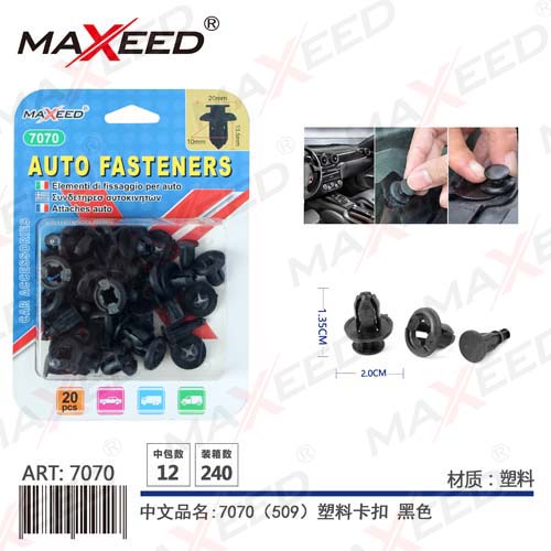 For connecting and securing various parts of the interior of a vehicle Material:Plastic QTY/Carton: N.W.: G.W. |