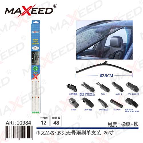 Remove rain, snow and dirt from the windshield to ensure a good view for the driver Material:Rubber+Metal QTY/Carton: N.W.: G.W |