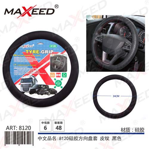 Item No:8120 Product name:8120 Silicone Steering Wheel Cover with Leather Pattern Color |