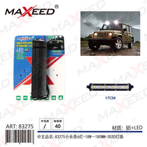 | Home > Product > Auto Accessories > Illumination > Work Light > 83275 small strip 6 lamp 18W-180MM-3030 bulb |