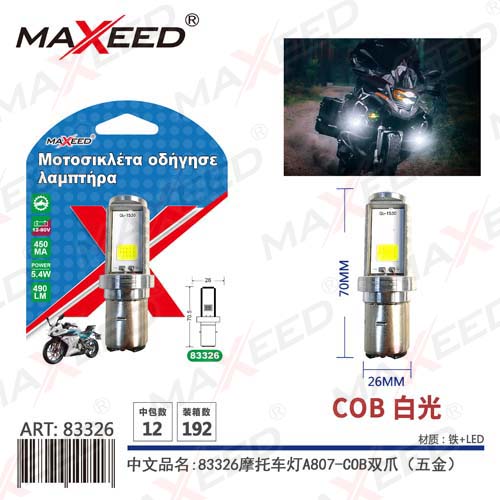 Item No:83326 Product name:83326 Motorcycle Lamp A807-COB Double Claw Color |