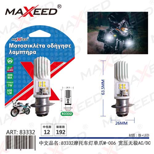 Item No:83332 Product name:83332 Motorcycle Lamp M-006 single Claw Wide pressure AC/DC Color |