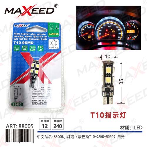 Item No:88005 Product name:88005 small light bulb (Kangba T10-9SMD-5050) white light 12V 1PC Color |