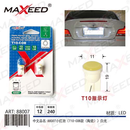 Item No:88007 Product name:88007 small light bulb (T10-COB model (ceramic)) white light 12V 2PC Color |