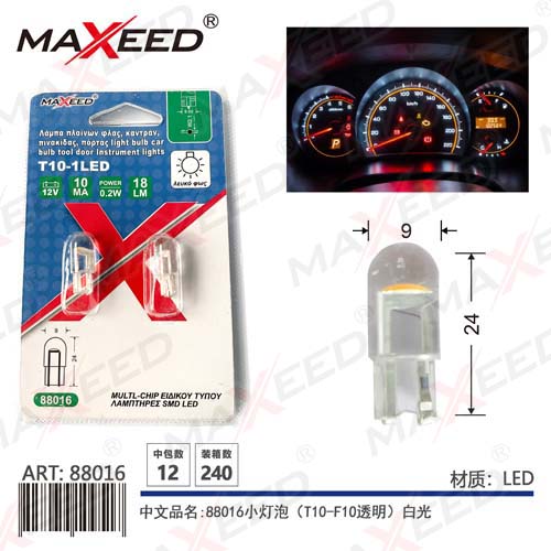 Item No:88016 Product name:88016 small light bulb (T10-F10 transparent) white light 12V 2PC Color |