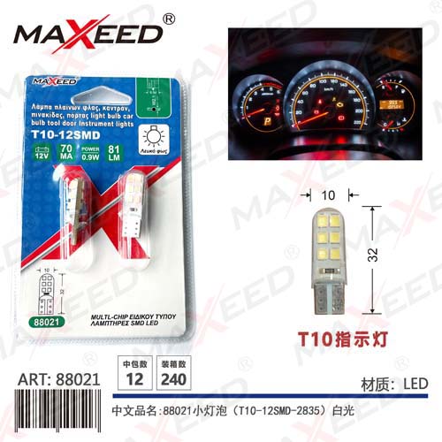 Item No:88021 Product name: 88021 small light bulb (T10-12SMD-2835) white light 12V 2PC 划译 88021 small light bulb (T10-12SMD-2835) white light 12V 2PC Color |