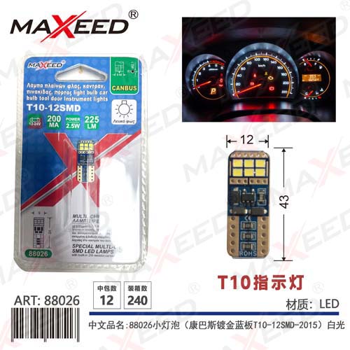 Item No:88026 Product name:88026 small light bulb (Kangbas gold-plated blue board T10-12SMD-2015) white light 12-24V constant current 1PC Color |