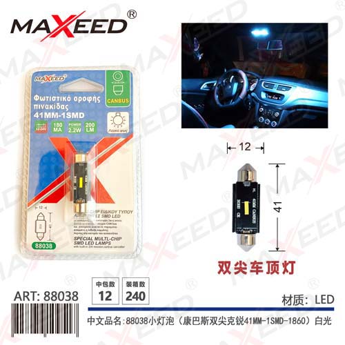 Item No:88038 Product name:88038 small bulb (Combas Double Sharp Cree 41MM-1SMD-1860) white light 12-24V constant current 1PC Color |