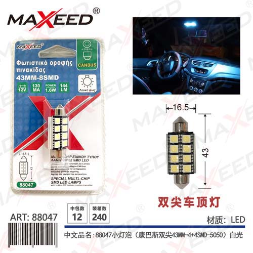 Item No:88047 Product name:88047 small light bulb (Compass double pointed 43MM-4+4SMD-5050) white light 12V Color |