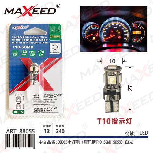 Item No:88055 Product name:88055 small light bulb (Kangba T10-5SMD-5050) white light 12V 1PC Color |