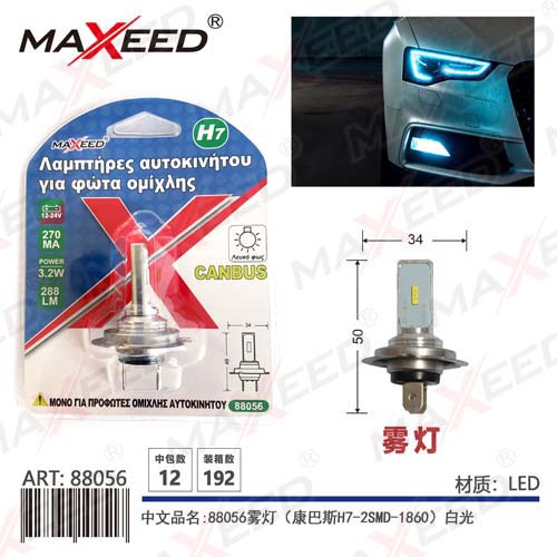 Item No:88056 Product name:88056 fog lamp (Kangba H7-2SMD-1860) white light 12-24V constant current 1PC Color |