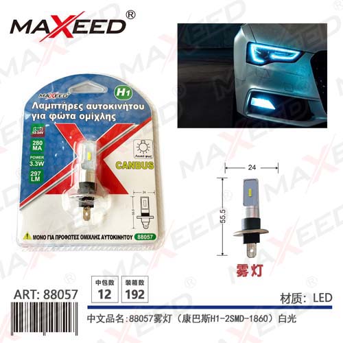 Item No:88057 Product name:88057 fog lamp (Kangba H1-2SMD-1860) white light 12-24V constant current 1PC Color |