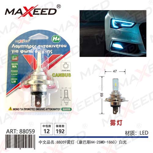 Item No:88059 Product name:88059 fog lamp (Compass H4-2SMD-1860) white light 12-24V constant current 1PC Color |