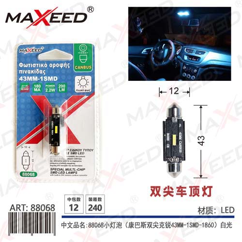 Item No:88068 Product name:88068 small light bulb (Combas Double Sharp Cree 43MM-1SMD-1860) white light 12-24V constant current 1PC Color |