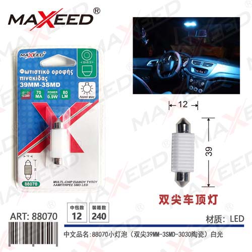 Item No:88070 Product name:88070 small bulb (double pointed 19MM-3SMD-3030 ceramic) white light 12-24V constant current 1PC Color |