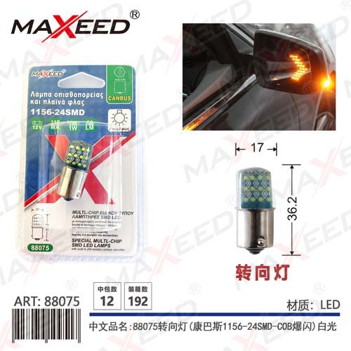 Item No:88075 Product name:88075 turn signal (Kangba 1156-24SMD-COB flashing) white light 12V 1PC Color |