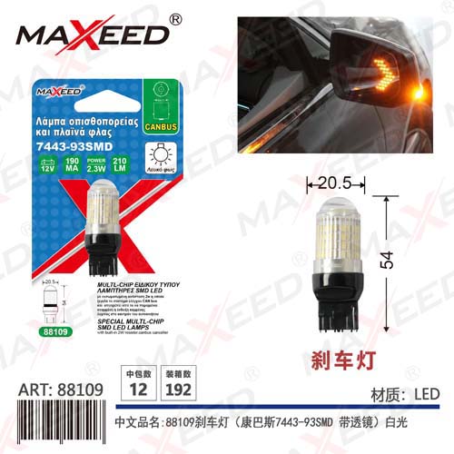 Item No:88109 Product name:88109 brake light (Compass 7443-93SMD with lens) white light 1PC Color |