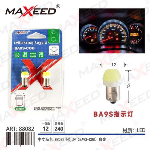 Item No:88082 Product name:88082 small light bulb (BA9S-COB) white light 12V 2PC Color |
