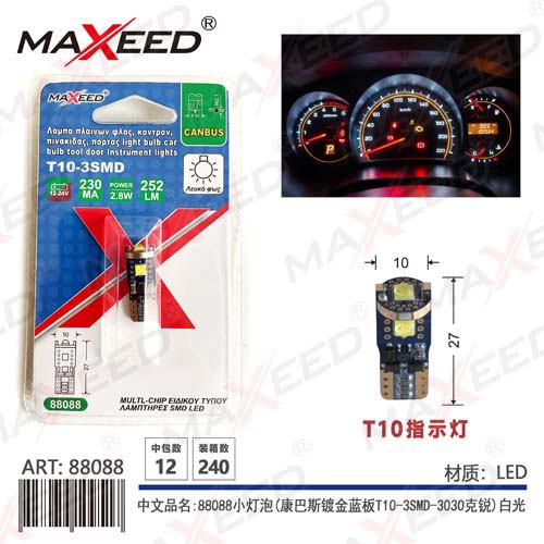 Item No:88088 Product name:88088 small light bulb (Kangbas gold-plated blue board T10-3SMD-3030g Rui) white light 12-24V constant current 1PC Color |