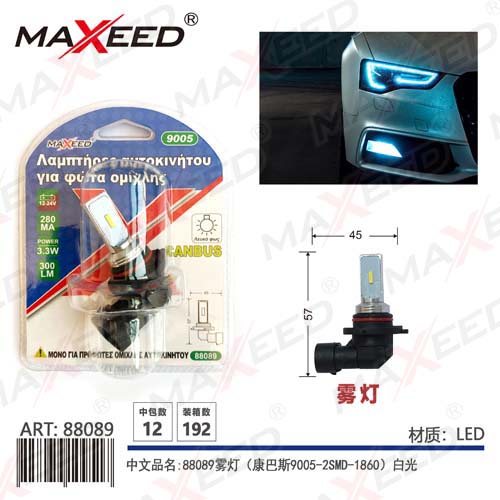 Item No:88089 Product name:88089 fog lamp (Kangba 9005-2SMD-1860) white light 12-24V constant current 1PC Color |