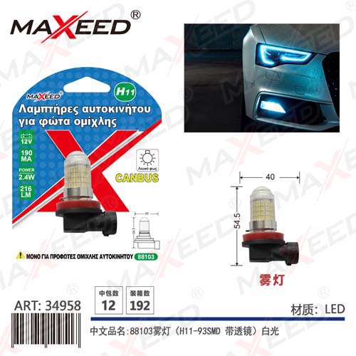 Item No:88103 Product name:88103 fog lamp (H11-93SMD with lens) white light 1PC Color |