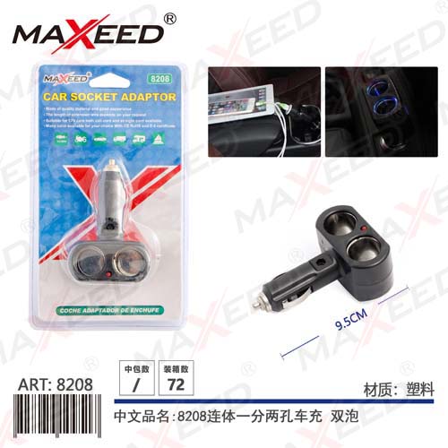 | Home > Product > Auto Accessories > Interior > Car charger > 8208 Car 2 socket with light charge adaptor |
